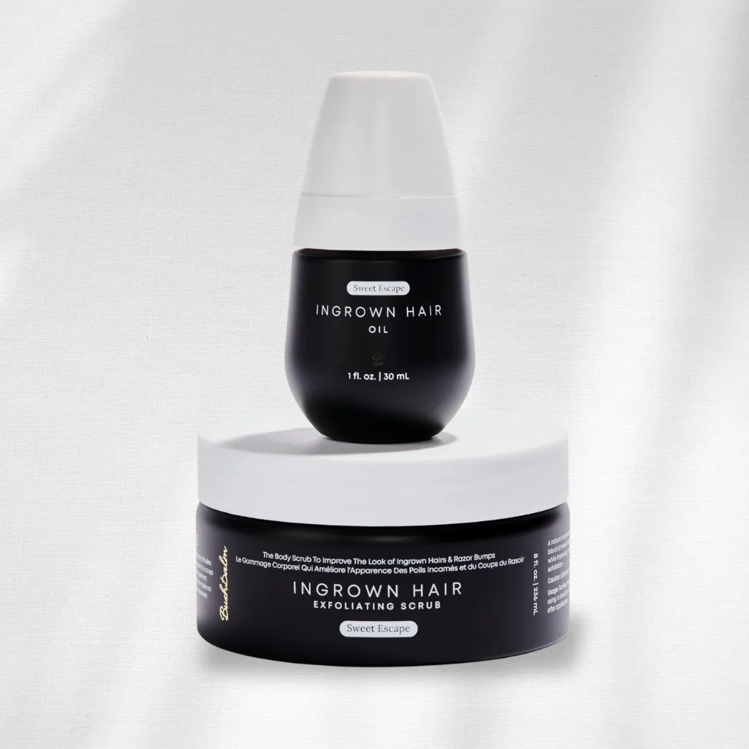 This all-natural oil and scrub are safe to use on all skin types & everywhere on the body, even in the most intimate areas. Prone to ingrown hairs? This is for you.